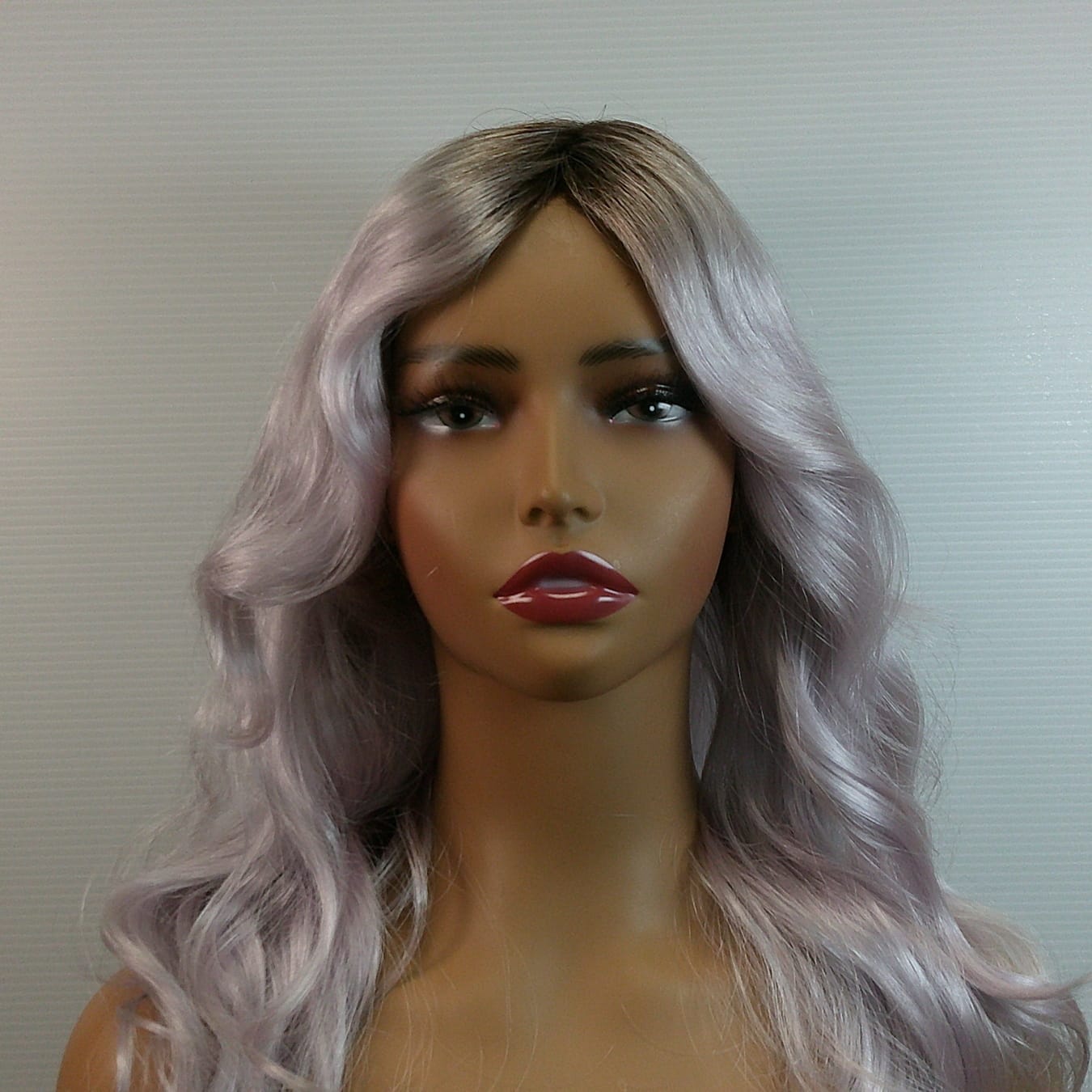 Alivia is a purple long length wig made with synthetic hair.