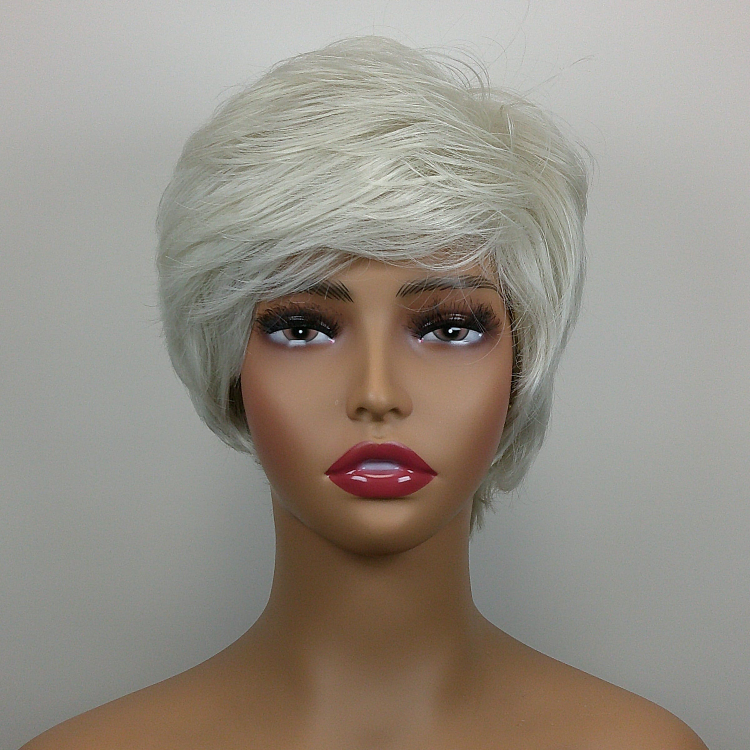Tina is a gray short length wig made with synthetic hair.